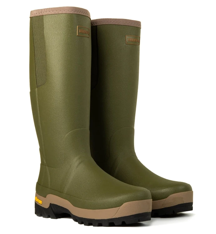 Harkila Orton Gusset Rubber Boots are a classic boot that are comfortable, even on long days in the field. Featuring Härkila’s Vibram sole, 3mm neoprene lining and a handy stretch gusset at the top. Lined with fleece to increase insulation and help keep the foot dry by wicking condensation and moisture away from the skin. An exclusive Vibram® Icetrek outsole ensures an optimal surface grip even on very cold, icy and snow covered surfaces.