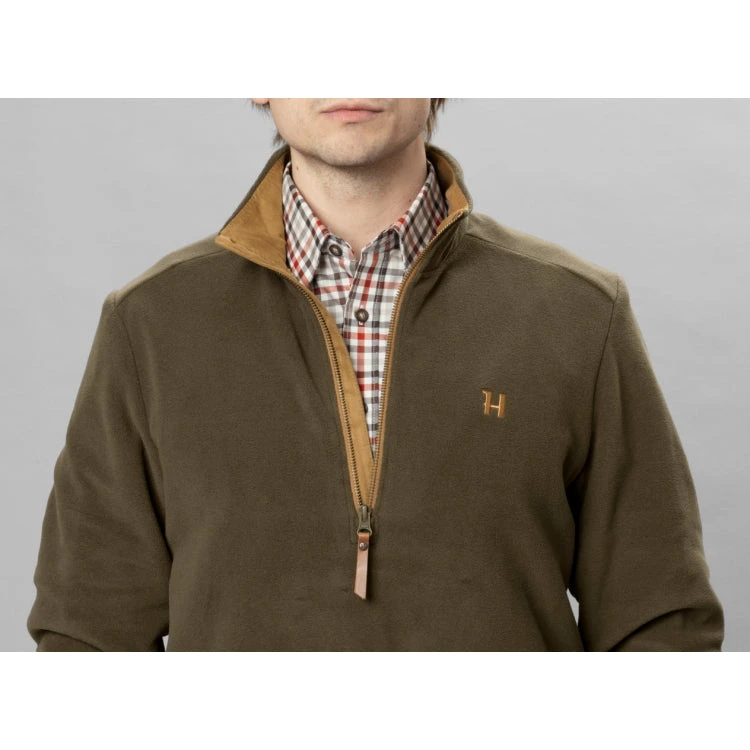 The Harkila Sandhem 200 Pullover is made from soft, stretchy Polartec® Thermal Pro® fleece fabric, which is warm, quick-drying and highly breathable. The pullover has a half-length zip with a leather pull tab and a wind-resistant lining with a classic check pattern.