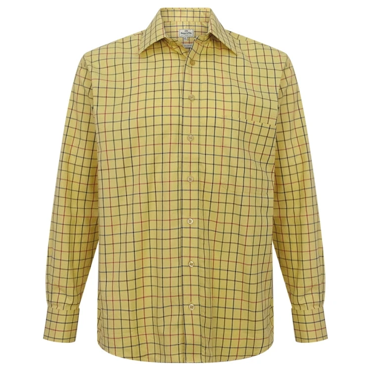 Built to compete with the best, the Hoggs of Fife Premier Tattersall shirts, crafted from 100% cotton have a wider, two colour check, giving a more formal edge. The Governor, with a gold base, is ideal for the Grouse season. A soft peached finish helps make this the ideal shirt for any country occasion.