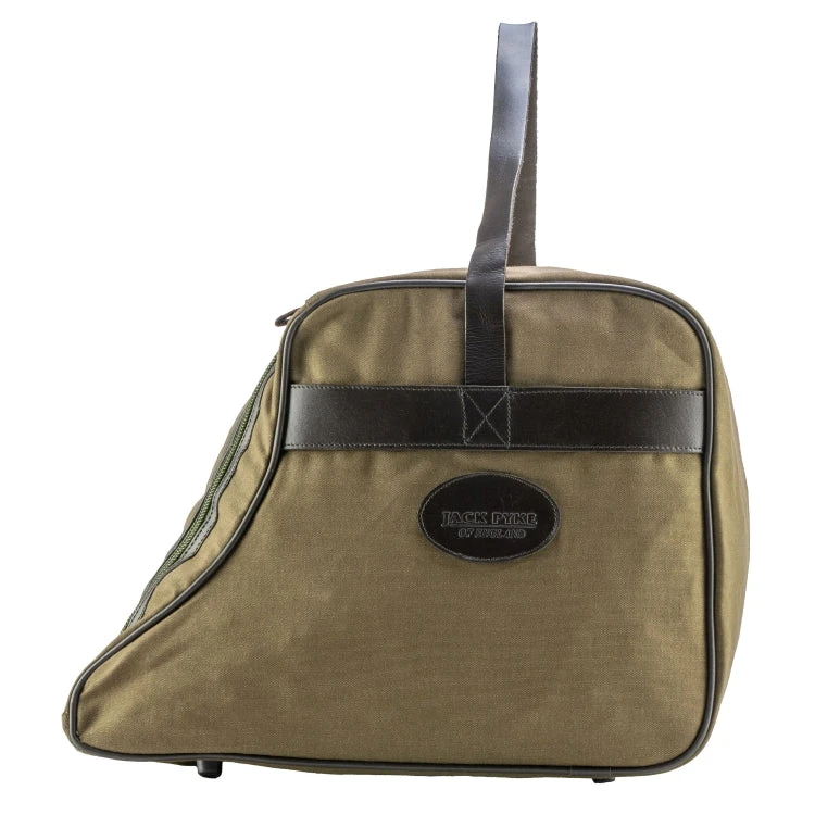 This Jack Pyke Canvas Walking Boot Bag is made from classic cotton canvas and comes in 3 complimentary colourways. Designed to carry any walking boots or footwear, the bag features a faux leather carry handle to complete the look. A wipe clean plastic base and a lockable front zip extends the bag’s functionality.Â