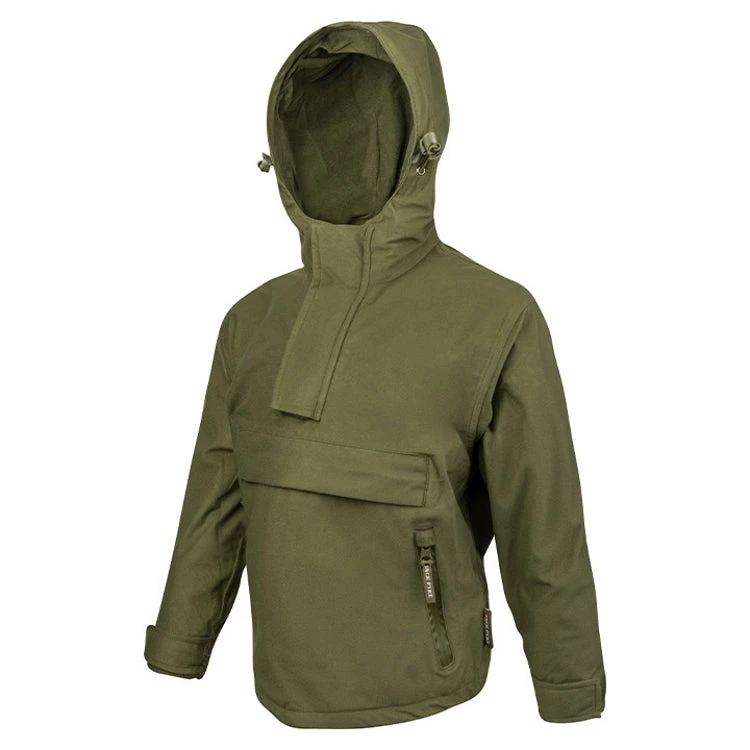 The Junior Galbraith Smock is Jack Pyke’s answer to those who are looking for a smart and full of features head over style smock. To ensure it is waterproof up to 10.000mm they used a 100% polyester brushed tricot with laminated membrane, which with addition of the full sized hood, adjustable wrist bands and an adjustable cord around the waist, makes this smock a great choice for any outdoor pursuits. Using brushed tricot material also results in an easily foldable and lightweight garment which can save some much needed space in your backpack. The Junior Galbraith Smock is a well designed all year round outer layer and because it is breathable up to 1000g/m2*24hr you can use it during mild conditions or wear over your fleece or hoodie. The large front pocket and two angled lower pockets with waterproofed zips will give you plenty of space to fit your phone, a pair of small binoculars and any other portable equipment.