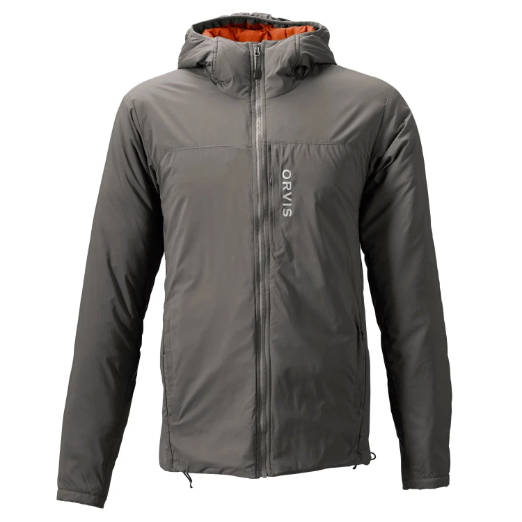 Orvis PRO fishing apparel is the most technologically advanced outerwear they’ve ever built. Using a combination of technical fabrication and action-specific design, Orvis PRO apparel takes on the elements and provides the protection necessary in even the harshest environments. The Orvis PRO Insulated Hoodie uses body-mapped insulation to provide optimal temperature control through a wide range of activity levels and environments. 80g PrimaLoft® Gold Active insulation (45% recycled content) protects the body’s core, the head, and arms with weightless, highly packable warmth ideal for active pursuits. Polartec® Alpha® (80g), (55% recycled content), originally designed for Special-Ops teams, regulates body heat and moisture through the side panels allowing the jacket to be comfortably worn through a wide range of temperatures and activities The outer and liner are a 20D mechanical stretch ripstop polyamide shell with unique coating to improve wind and weather resistance.