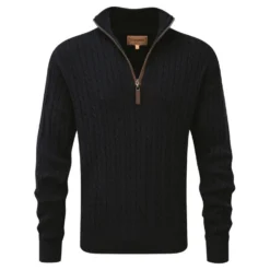Schoffel Cotton Cashmere Cable 1/4 Zip Jumper – Navy