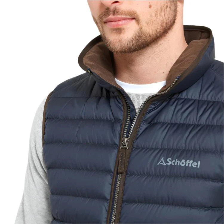 This stylish Schoffel Bowden Down Gilet is made from 100% breathable fabric and is filled with 800 fill power ethically sourced down, in a lightweight and regular fit design. It has a two-way YKK front zip, Schöffel branded zip pull, fabric pip and signature brown trim, as well as two external zip security pockets. Perfect for the outdoors.