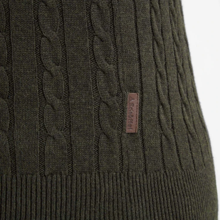 - Cable knit 1/4 zip neck with leather Schoffel branded zip pull