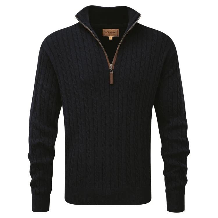 - Cable knit 1/4 zip neck with leather Schoffel branded zip pull