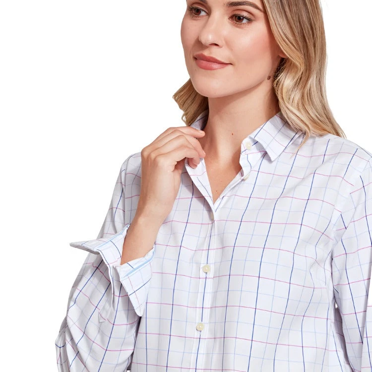 The Schoffel Ladies Blakeney Shirt is crafted from 100% cotton for optimal comfort. Featuring Schoffel branded buttons and contrast piping, this regular fitting shirt offers a premium aesthetic. Detailed with a thin checked design and contrasting inner collar, the Blakeney is perfect for all year round wear. Whether paired with a Gilet and jeans or a skirt, you can dress up or down to suit any occasion. Plus, its machine washable for easy care.