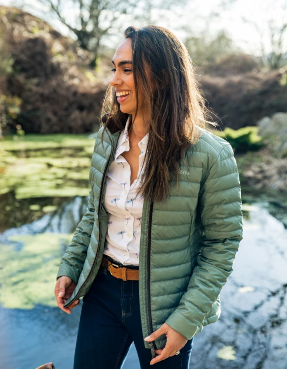 Lightweight, sustainable and extremely robust, the Schoffel Ladies Hambleton Down Jacket can be worn all year round. Filled with ethically sourced down, this wonderful jacket provides insulation from brisk winter mornings and breezy afternoons spent outdoors. Water-repellent, this jacket is made from WR PFC-free, 100% recycled polyester and can be machine-washed if it gets dirty. The tailored fit offers a flattering silhouette and the jacket boasts two external zip pockets perfect for stashing away small items or hiding cold hands. Finished with a Schöffel branded metal zip and signature brown trim, this piece offers an exceptional look.