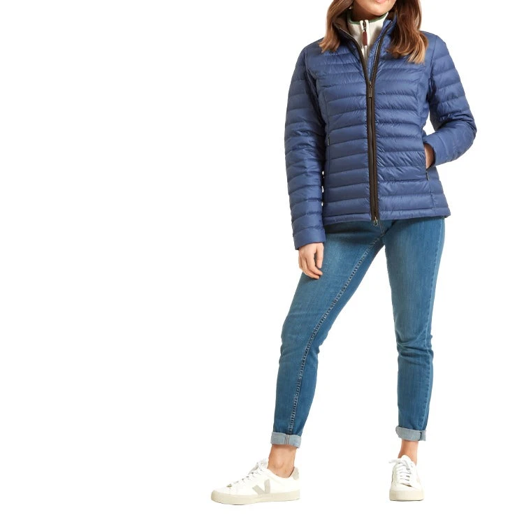 Lightweight, sustainable and extremely robust, the Schoffel Ladies Hambleton Down Jacket can be worn all year round. Filled with ethically sourced down, this wonderful jacket provides insulation from brisk winter mornings and breezy afternoons spent outdoors. Water-repellent, this jacket is made from WR PFC-free, 100% recycled polyester and can be machine-washed if it gets dirty. The tailored fit offers a flattering silhouette and the jacket boasts two external zip pockets perfect for stashing away small items or hiding cold hands. Finished with a Schöffel branded metal zip and signature brown trim, this piece offers an exceptional look.