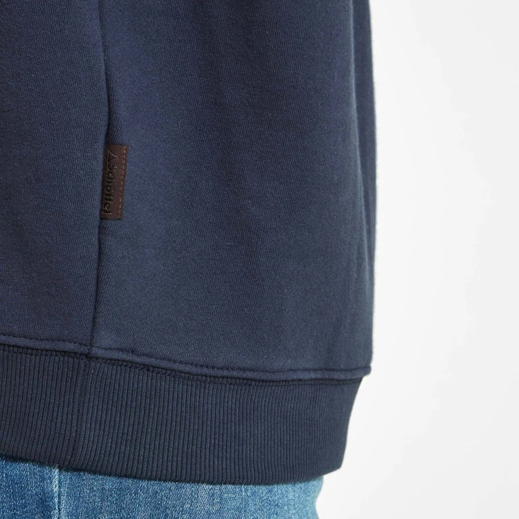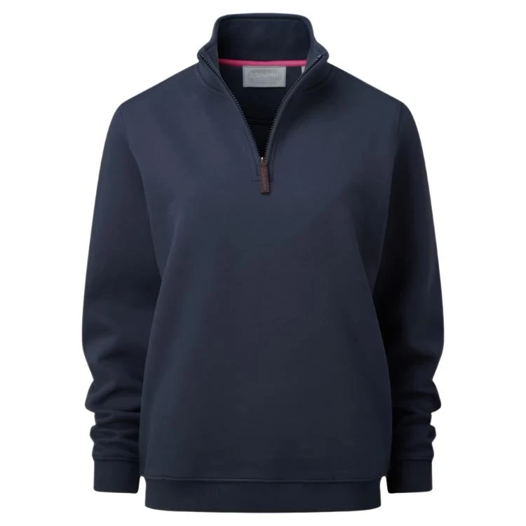 This Schoffel Ladies Sennen Cove 1/4 Zip Sweatshirt is the perfect combination of comfort and style. Constructed with a supersoft jersey fabric, comprised of 80% cotton and 20% polyester and featuring Schöffel embroidery, this piece has a regular fit with a quarter zip and is finished with Schöffel branded suede zip pull and pip. Machine washable.
