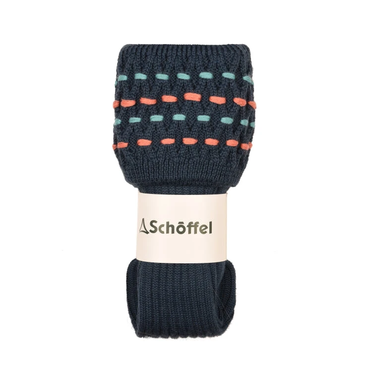 The Schoffel Stitch ladies sock is the perfect accessory for your country sports attire this season. Crafted from a fine blend of Merino wool with added Lycra, this sock has enhanced stretch to provide the perfect fit and comfort, while the reinforced heel and toe area provide hardwearing and durable wear. Merino wools naturally warming and breathable qualities ensure this sock is comfortable to wear all day, keeping your feet feeling fresh. Designed to fit perfectly over boot or wellies and finished with a stitched cuff detail, these socks are perfect for country sporting.