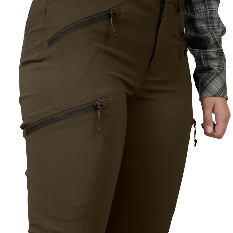 The Seeland Larch Stretch trousers are made from a fabric that provides a relatively close fit. They have an elasticated waist and stitching at the knees that lets you squat without overstretching the fabric. This means that they offer great freedom of movement and are extremely comfortable to wear. The front and thigh pockets are zipped, to keep their contents safe when you are on the move. The trousers also have ankle adjustments, for a close fit and to keep dirt out of your boots.