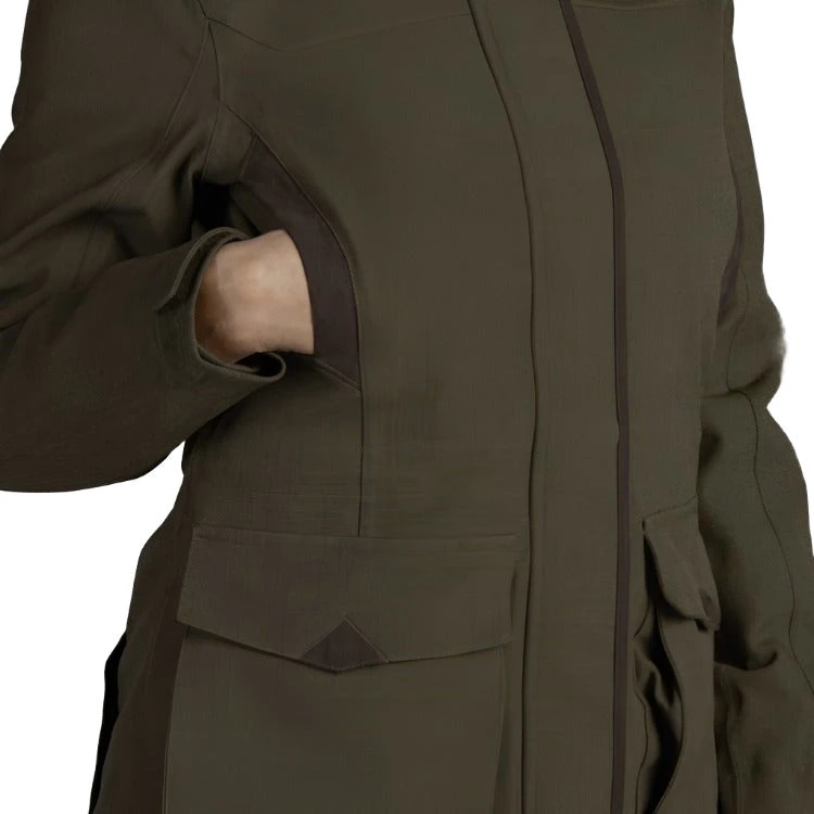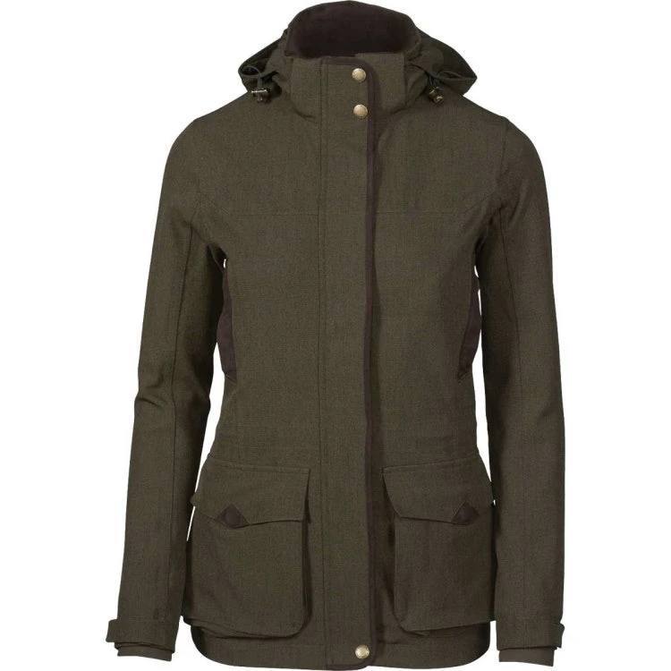 The Seeland Woodcock Advanced jacket is a classic shooting jacket with a twist. The jacket has a feminine cut and is designed in the traditional English game-shooting style. It is made from stretch material, meaning that you can readily take your aim at even the most difficult birds. Although featuring a traditional and stylish outer, it is a modern garment with its windproof and waterproof membrane to protect you from wind and rain. The jacket is made from a stretch fabric for optimum freedom of movement. It has large cartridge pockets with QuickLoad function and drain holes for those rainy shooting days. This jacket makes an ideal choice for when you want to be well-dressed for shooting in company, but retain full freedom of movement.Colour/Code: Shaded Olive – 100213426