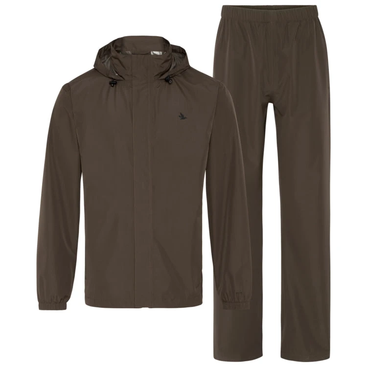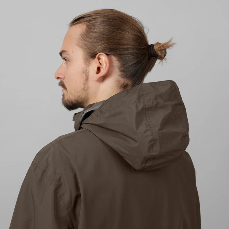 The Seeland Taxus rain set is a thin and very lightweight combination of jacket and trousers that folds up into the jacket’s left-hand pocket and can be carried everywhere with you. The rain set has a waterproof and windproof SEETEX® membrane, so condensation does not accumulate inside, unlike in an ordinary rainsuit. The hood is adjustable to fit snugly around your head in the cold and wet, and it packs away into the collar when not in use. This provides extra insulation around the neck. The jacket also has a storm flap and two large front pockets with velcro closures, as well as elasticated cuffs to keep rain and wind out of your sleeves. The trousers have an elasticated waist and velcro openings on each side, for easy access to your trouser pockets.