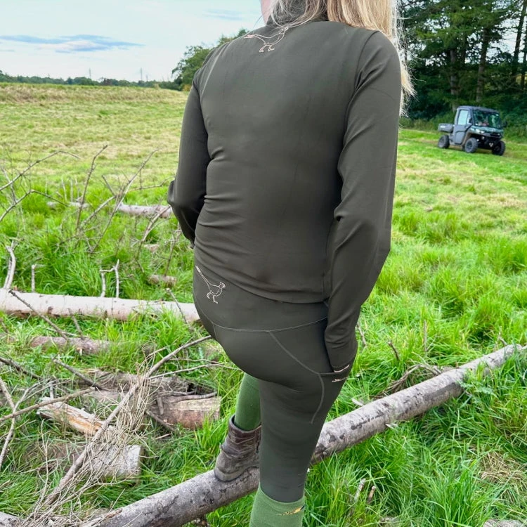 Shuttlesocks leggings featuring rose gold button details and two deep side pockets at the front along with a change pocket and Shuttlesocks signature pheasant detail at the back. High waisted fit with extra stretchy for added comfort, they’re super stylish and perfect for walking the dog, getting out in the garden or just lounging at home.