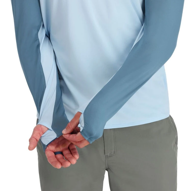 - Extended sleeve length with envelope thumbholes and a center finger loop for back-of-hand sun protection